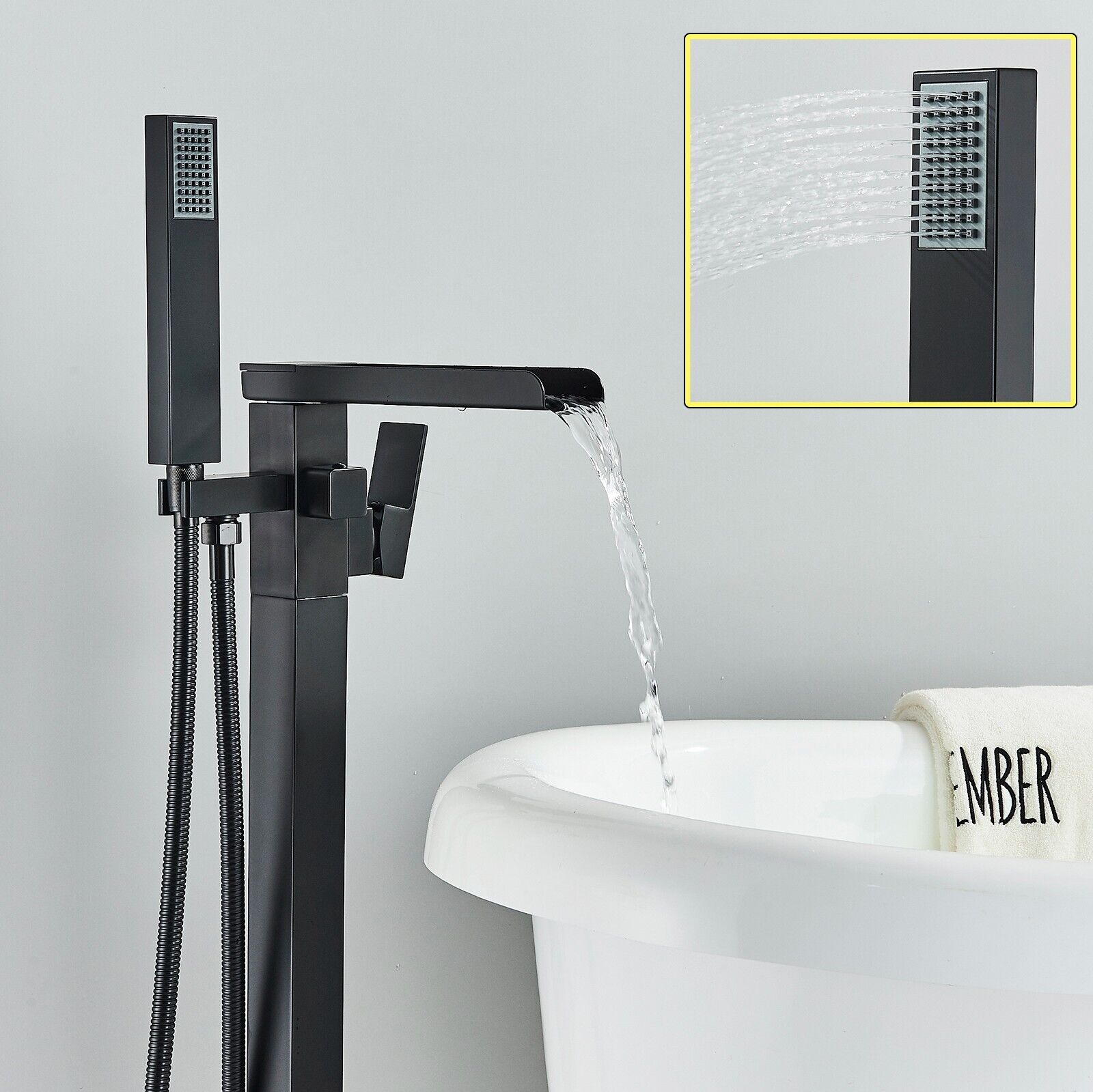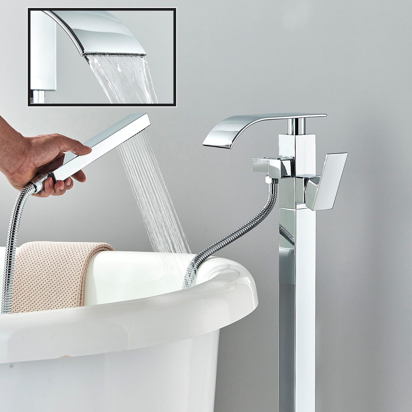 Chrome Waterfall Free Standing Floor Mounted Bath Taps Hand Held Shower Bathtub