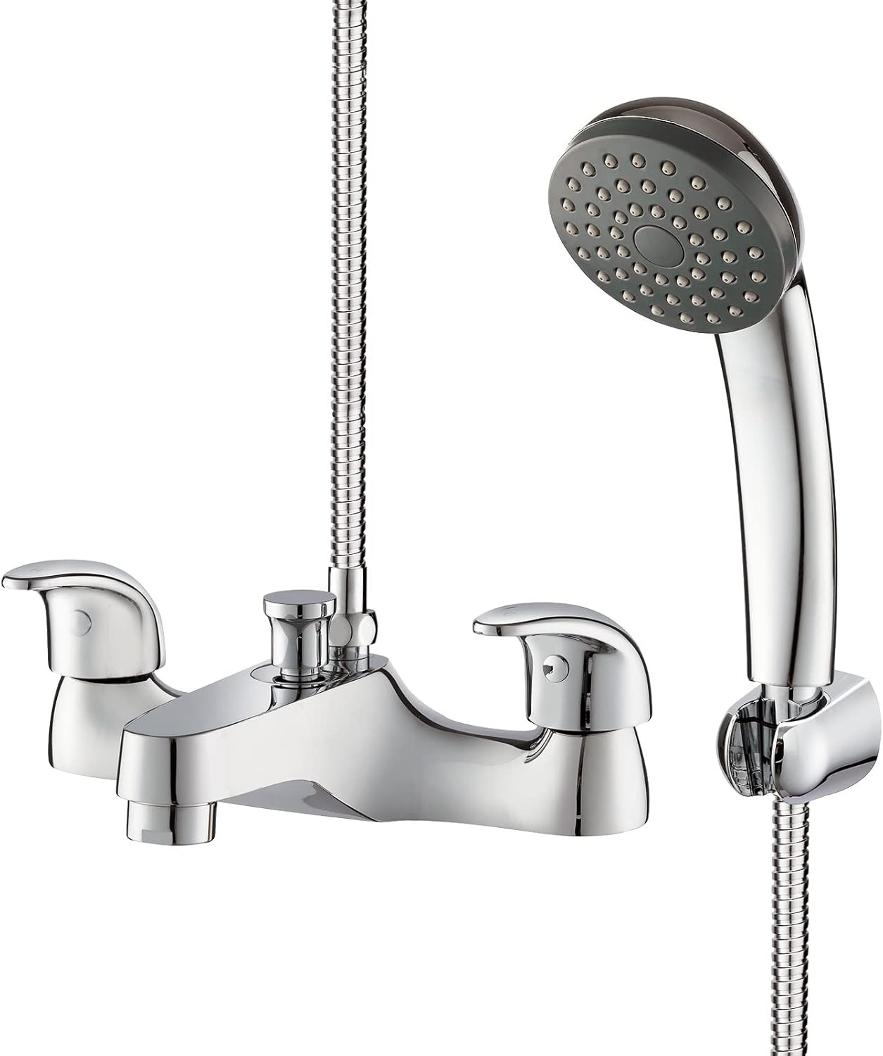 Bath Taps with Shower, Bath Shower Filler Mixer Tap Double Lever Chrome Solid Br