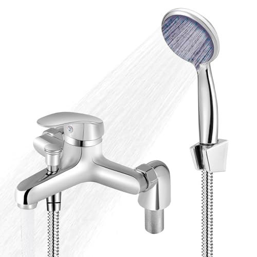 Rehomthy Bath Shower Mixer Tap with Shower Head and Hose, Modern Round Monobloc Single Bath Taps with Shower Attachment, Chrome, 180mm Centres