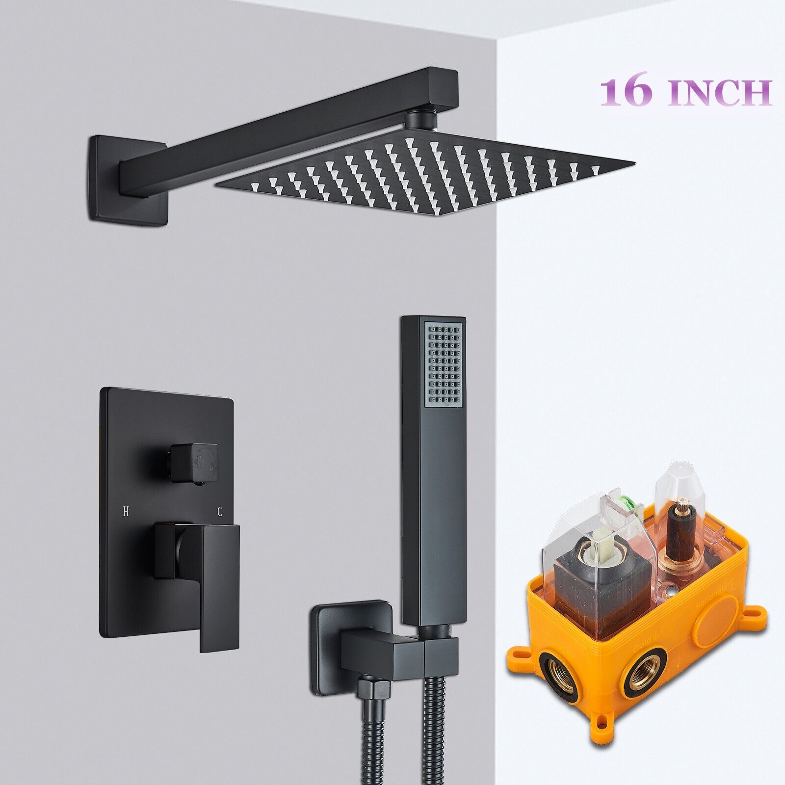 Black 2-Function Bath Rainfall Shower Taps Wall Mount Shower System Set Mixer UK