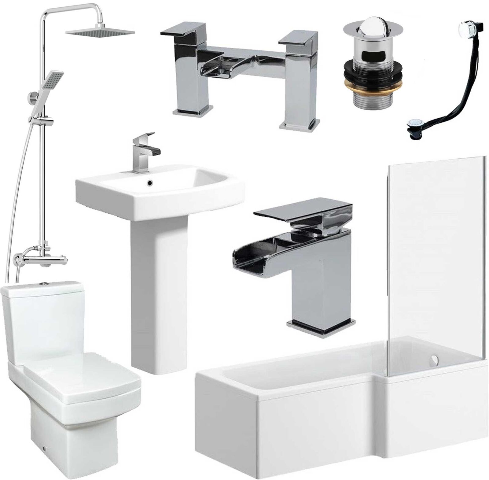 Bathroom Suite 1600mm RH Bath Toilet Basin Taps Shower Screen & Waste