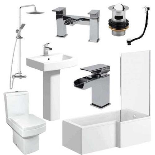 Bathroom Suite 1700mm RH Bath Toilet Basin Taps Shower Screen & Waste