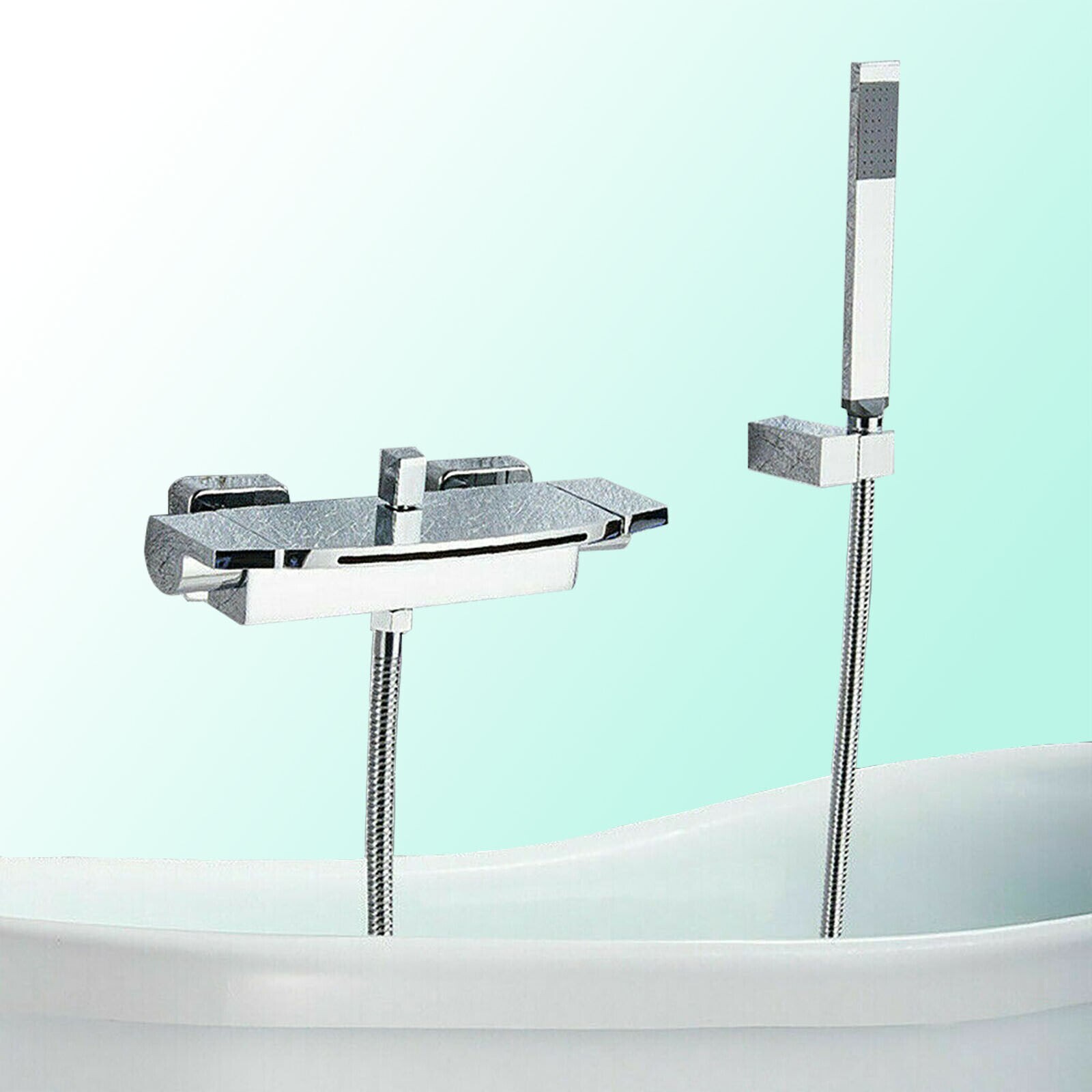 Chrome Bath Taps with Hand Shower Waterfall Bathroom Bathtub Mixer tap 1-Lever