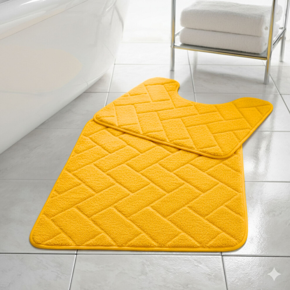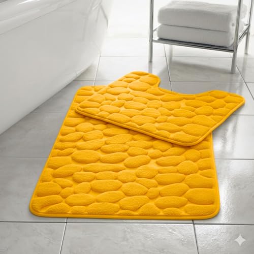 (Yellow, 1) Blocks Non- Slip Memory Foam Bath Mat/ Toilet Mat Set