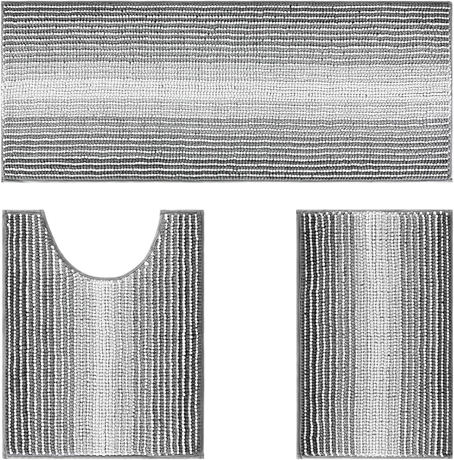 Bathroom Mat Set of 3, Bath and Toilet Mat Set,Ultra Soft Chenille Bath Mat Non