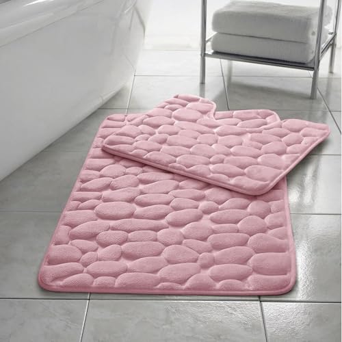 HomeSpace Direct Pebbles Non- Slip Memory Foam Bath Mat/Toilet Mat Set Pink