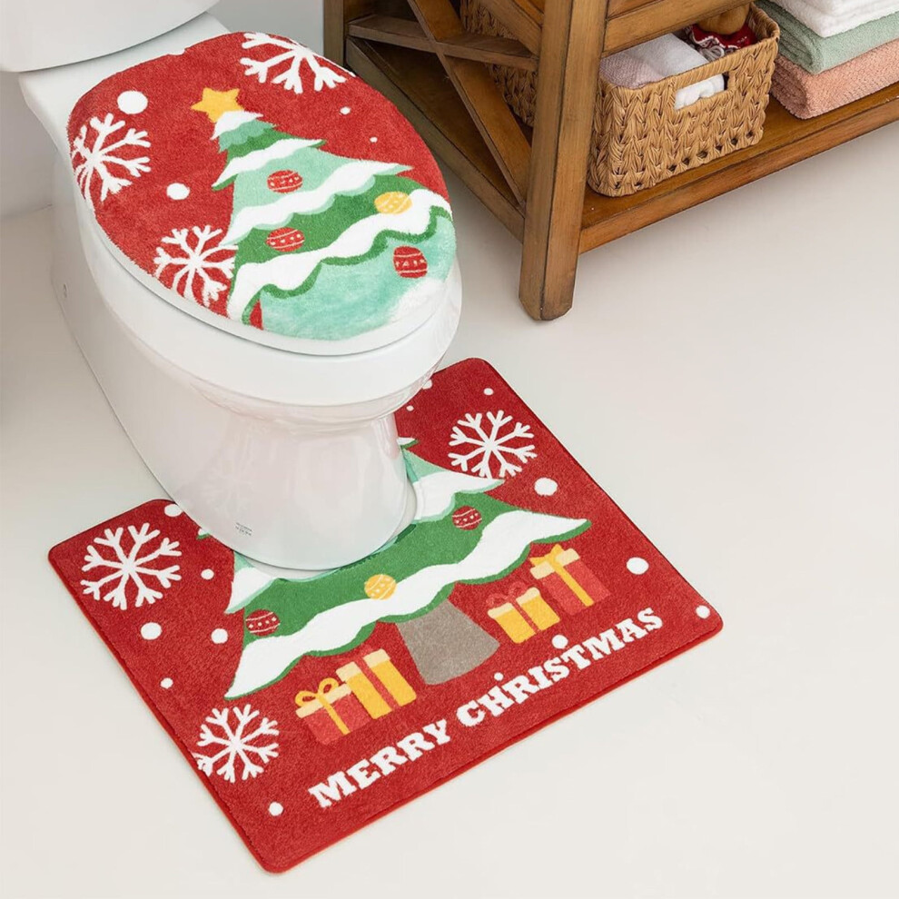 PRETXORVE Christmas Bath Mat & Toilet Mat Set â Faux Fur, Washable, Non-Slip, Compatible with Holiday Bathroom Decor