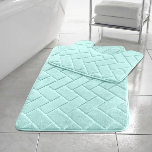 HomeSpace Direct Blocks Non- Slip Memory Foam Bath Mat/Toilet Mat Set Aqua Blue