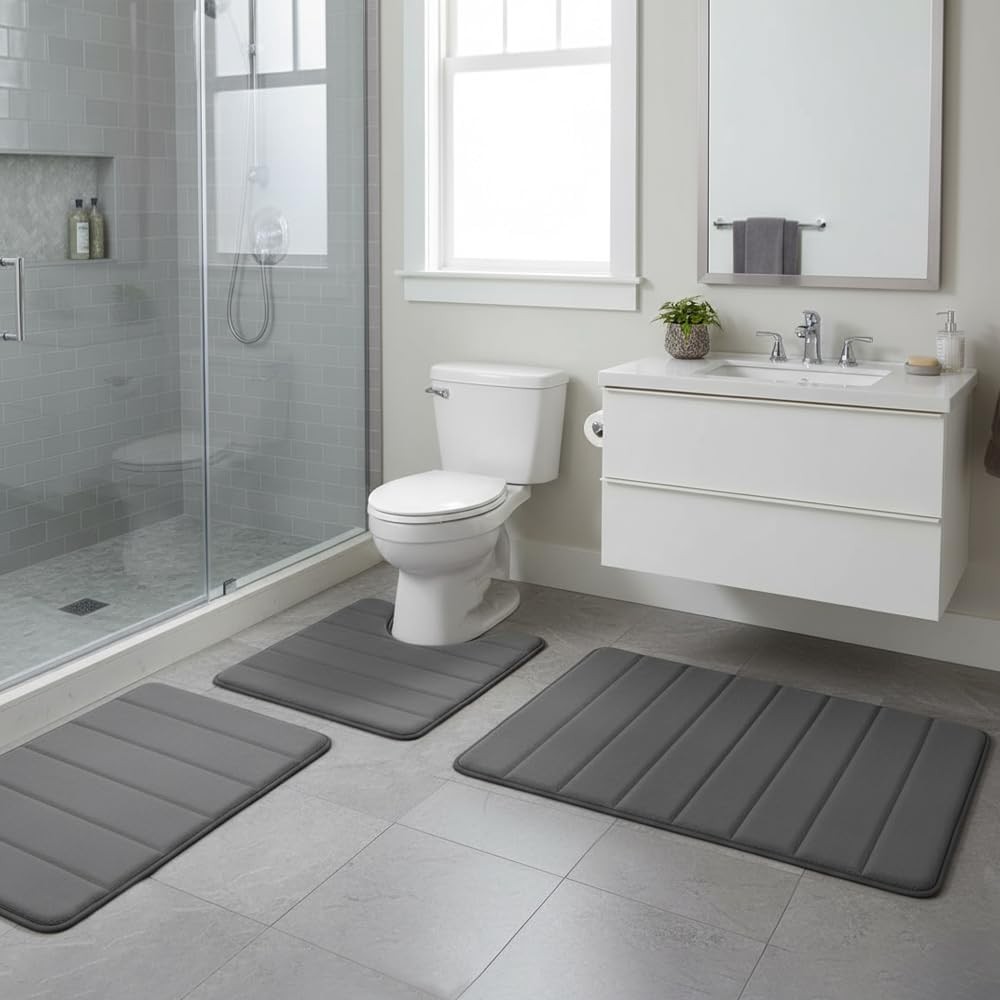 Venuso Bathroom Mat Sets 3 Piece, Absorbent Bath and Toilet Mat Set, Non Slip M