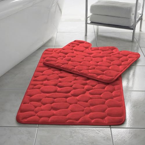 HomeSpace Direct Pebbles Non- Slip Memory Foam Bath Mat/Toilet Mat Set Red