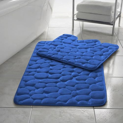 HomeSpace Direct Pebbles Non- Slip Memory Foam Bath Mat/Toilet Mat Set Blue