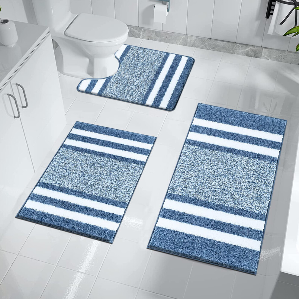 3 Piece Bath Mat Set,Bath and Toilet Mat Set,Machine Washable Super Absorbent B