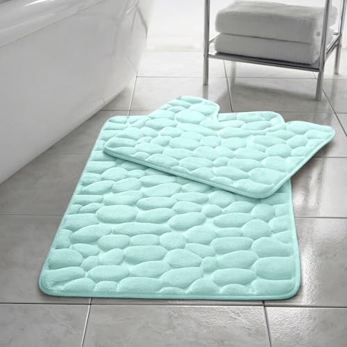 HomeSpace Direct Pebbles Non- Slip Memory Foam Bath Mat/Toilet Mat Set Aqua Blue