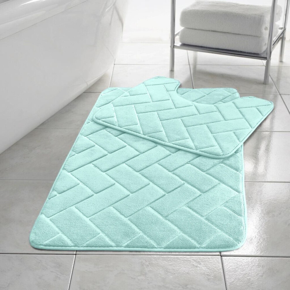 (Blue, 2) Blocks Non- Slip Memory Foam Bath Mat/ Toilet Mat Set