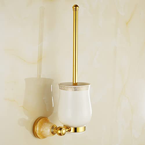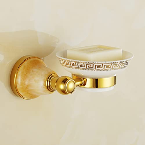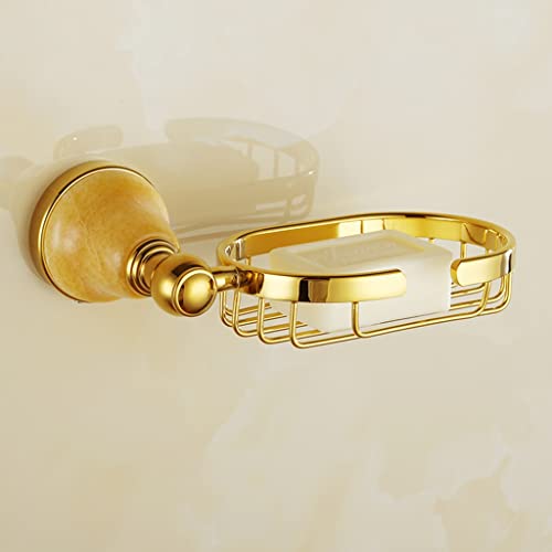 JQQJZLC Bathroom Shelves European-style Golden All-copper Natural Jade Storage Rack, Towel Rack Rail Bar, Bath Towel Holder, Bathroom Towel Rail Pendant Set (Color : Single rod)