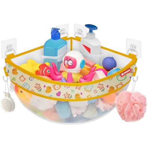 UNEEDE Bath Toy Storage for Corner Wall - Practical Bathroom Organiser with 16.35L Capacity, Yellow Duck Print - Ideal for Storing Baby Bath Toys Space Saving