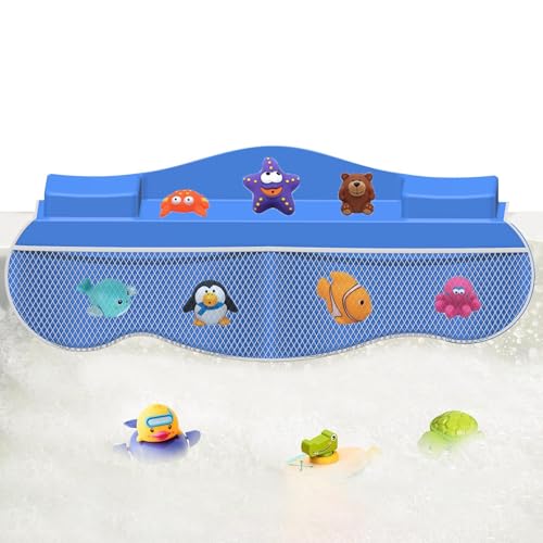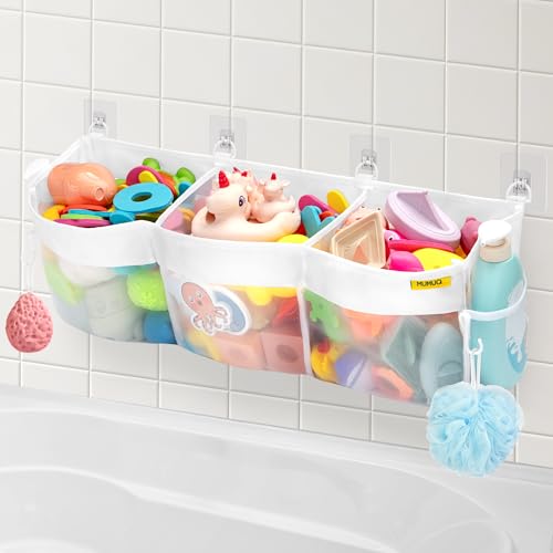 Bath Toy Holder - Hanging Mesh Storage Bag, Bathroom Toy Organiser for , Quick Dryer, 3 Pocket Net with Strong Suction Cups, Baby Toy Holder for Bath Accessories, Children