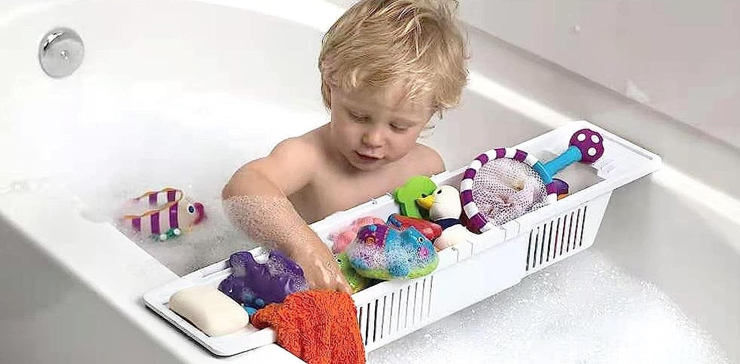 Large Kids Baby Bath Toy Tidy Organiser Extendable Tray Storage Holder Bathroom