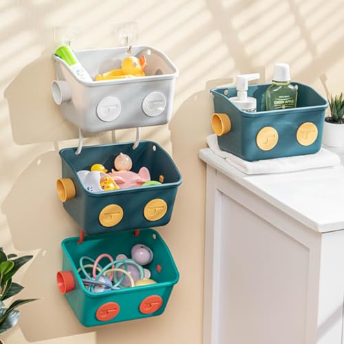 Tokokimo Bath Toy Storage, Bathroom Toy Storage, Cute Robot Shaped Bathtub Bath Toy Organiser, 3 Pieces (Green/Blue/Grey)