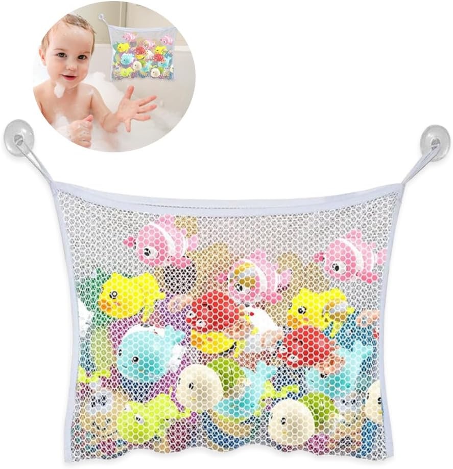 Bath and Shower Toy Organiser Set - Large Mesh Bath Toy Net with 2 Strong Suction Cups For Smooth Surfaces - Keep Your Kid's Bath Tub Toys Dry and Off of the Bathtub and Bathroom Floor - For Showers