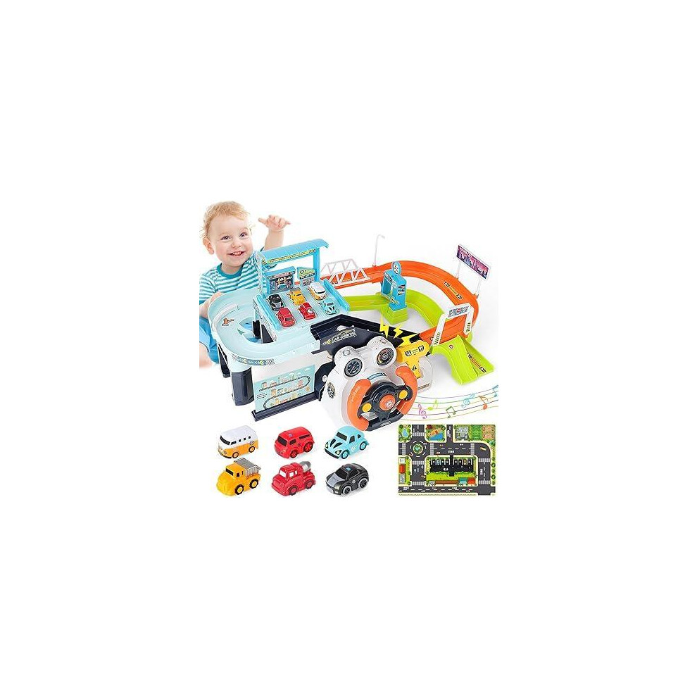 Kids' Interactive Car Track Set-Steering Wheel with Sound Effects Track Simulation Toys Ideal for 3-5 Year Olds Perfect for Birthdays Christmas Gifts