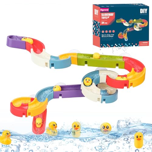 Sigowal 34Pcs Bath Toys for 3 Year Olds Duck Slide Bath Toy Toddler Bath Toys Bath Track Game Shower Water Toys with Suction Cups Baby Bathtub Toys for Kids 3 4 5 6 Year Olds Boys Girls Gift