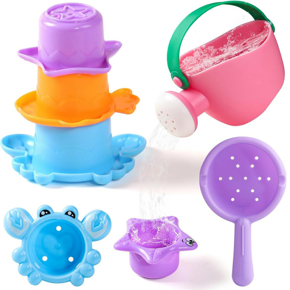 Baby Bath Toys 5-Pcs Mould-Free Water Play Pool Set For 1-3 Year Olds, Stacking Cups, Bath Boats, Watering Can