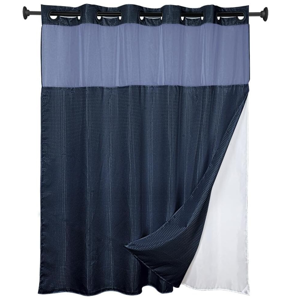 goodbath No Hook Shower Curtain and Liner Set,Luxury Waffle Bath Curtains for Bathroom Hotel, Mesh Top Window,Double Layer,180x188cm,Blue