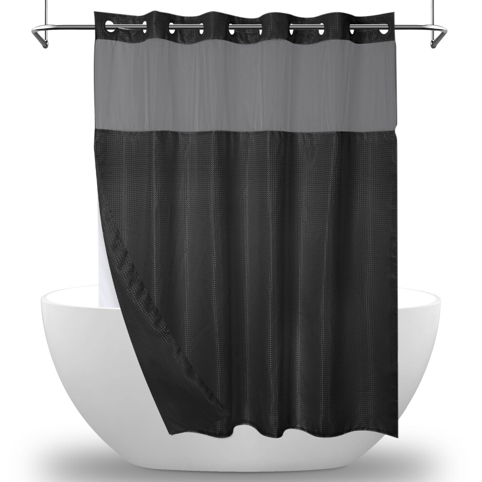 MEKOTRIN Hookless Shower Curtain with Snap on Liner Waffle Fabric Double Layer, 74 x 71 Inch Weighted Black Shower Curtains with Viewing Window, Bath