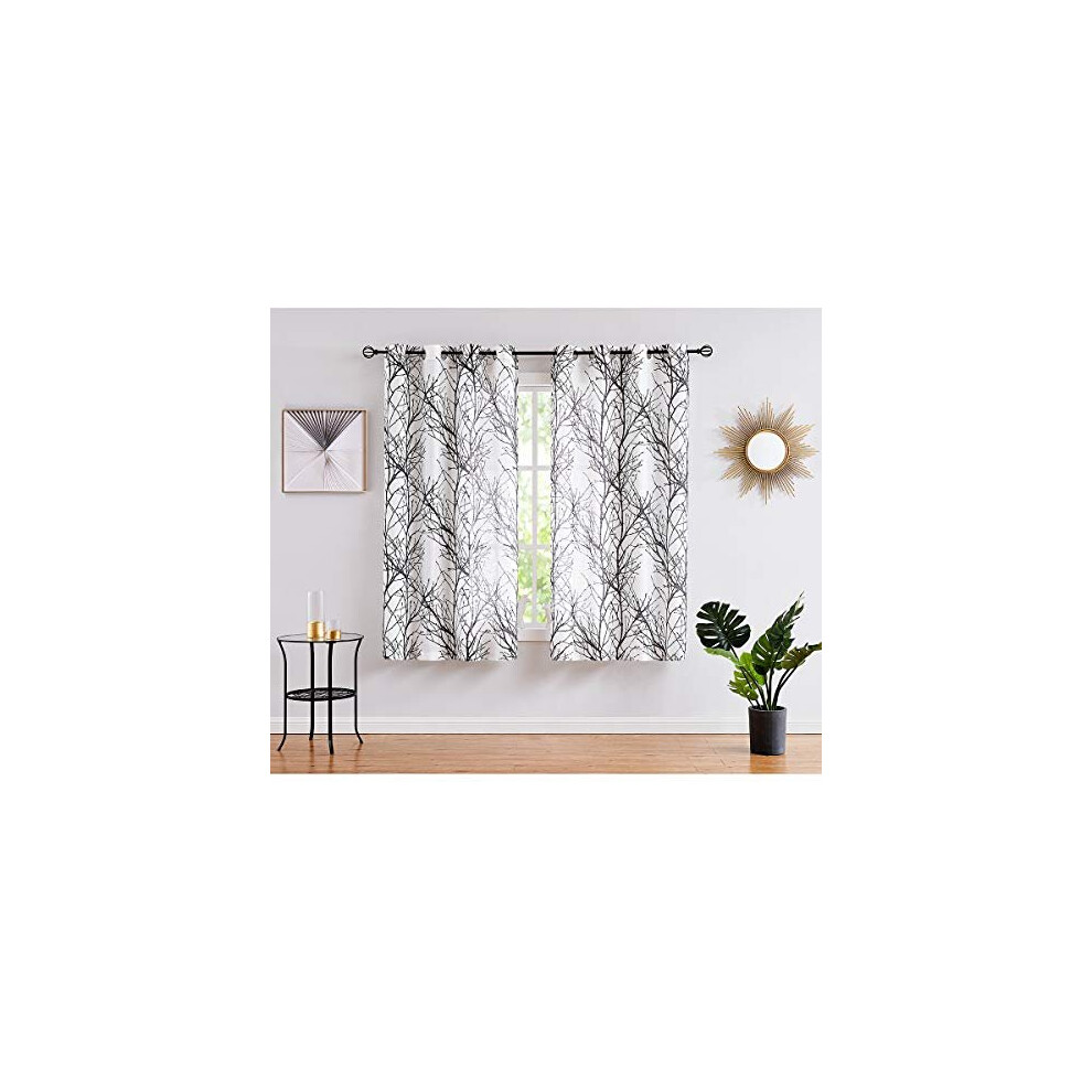 FMFUNCTEX Black White Sheer Curtains for Living-Room 72 inches Long Print Semi-Sheer Window Drapes for Bedroom Branch Tree Curtains for Bath