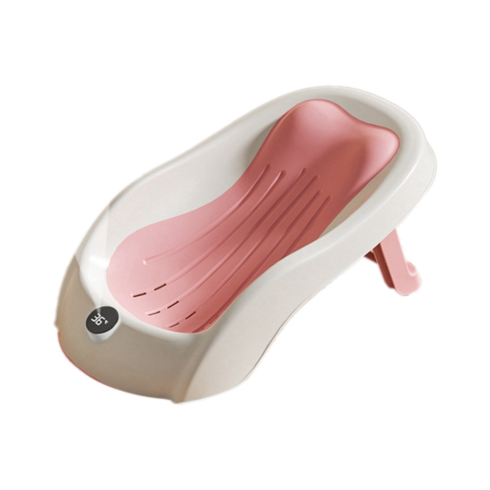 Foldable Baby Bath Support With Thermometer Slip Resistant Ergonomic Infant Bath