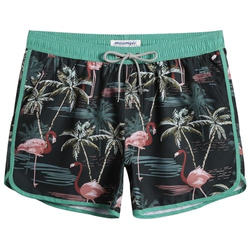 MaaMgic Mens 5" Short 70s 80s 90s Vintage Swim Trunks Quick Dry Bathing Suits Swimming Shorts Swimsuits Board Shorts,New Dark Green Flamingo Plamen 4.5,M