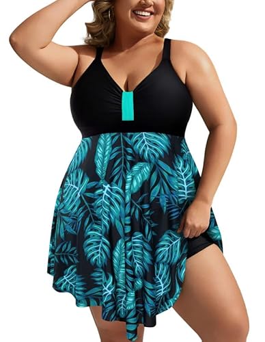 Womens Tankini Swimsuits Athletic 3 Piece Tummy Control Bathing Suits with Shorts Modest Tank Tops XL Red Blue Leaves