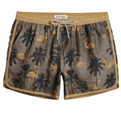 MaaMgic Mens 5" Short 70s 80s 90s Vintage Swim Trunks Quick Dry Bathing Suits Swimming Shorts Swimsuits Board Shorts,New Palm Flamingo Light Brown 4.5,M