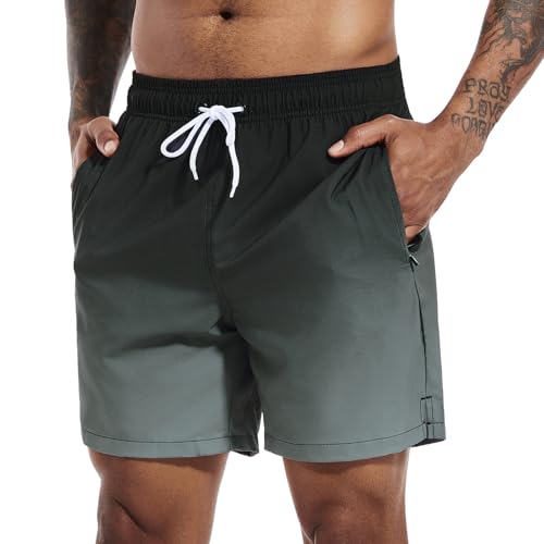 SILKWORLD Mens Swim Trunks Quick Dry Bathing Suits Shorts with Zipper Pockets, Black and Gray Gradient, XX-Large