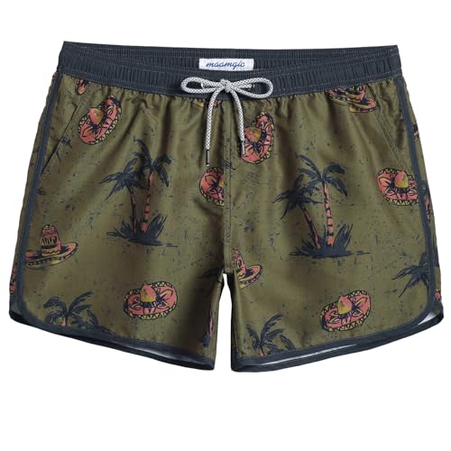 MaaMgic Mens 5" Short 70s 80s 90s Vintage Swim Trunks Quick Dry Bathing Suits Swimming Shorts Swimsuits Board Shorts,Fossil-Green,S