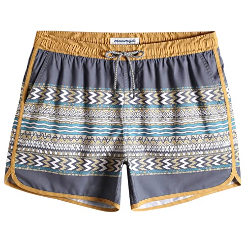 MaaMgic Mens 5" Short 70s 80s 90s Vintage Swim Trunks Quick Dry Bathing Suits Swimming Shorts Swimsuits Board Shorts,Yellow Blue,L