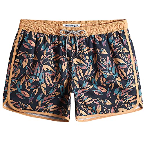 MaaMgic Mens 5" Short 70s 80s 90s Vintage Swim Trunks Quick Dry Bathing Suits Swimming Shorts Swimsuits Board Shorts,Leaf Black,S