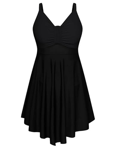 Hanna Nikole Swim Dress Women's Plus Size Skirted One-Piece Swimsuits Tummy Control Swimwear Shape Swimming Costume Soft Bathing Suits with Swim Shorts Black