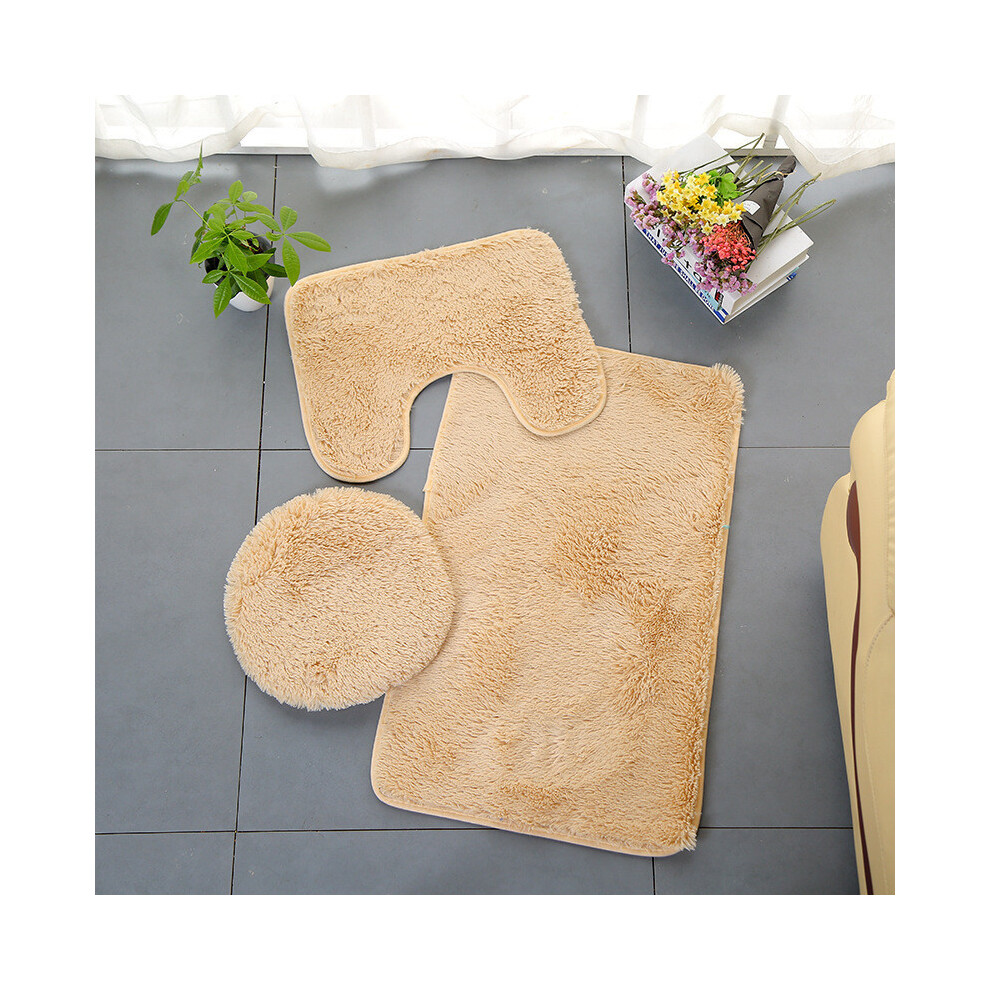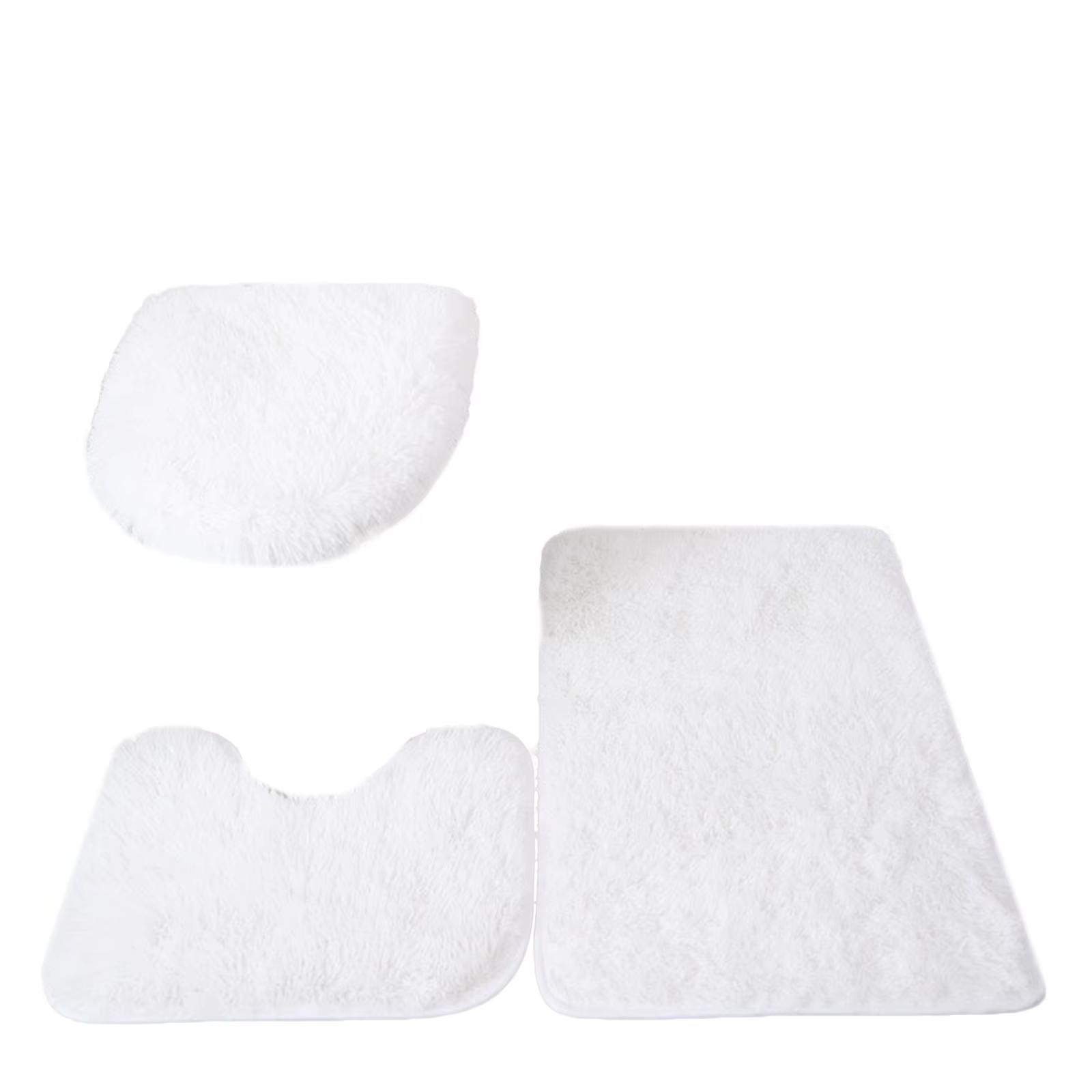 3Pc Bathroom Set Rug Mat Toilet Lid Cover Plain Solid Color Bathmats Rugs Kit No
