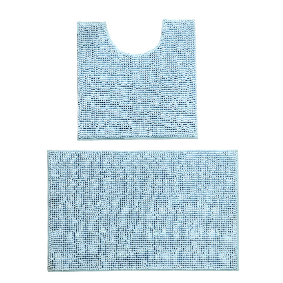 Machine Washable Bathmats, Absorbent Microfiber Mats in Light Blue, Quick Dry Bathroom Rugs for a Fresh Bathroom, Anti-Slip Chenille Bath Rug Ensuring