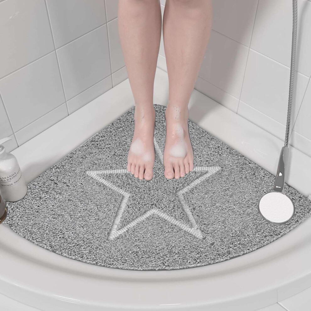 Nicoman Corner Bath Mat Non Slip Anti Mould, 60 cm Star Curved Bath Mats for Inside Shower, Loofah Grey Bathmats for Bathtubs Toilet Bathroom Floor,