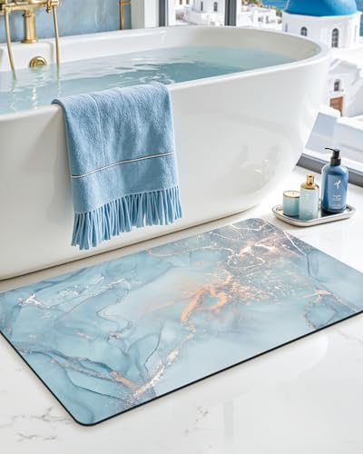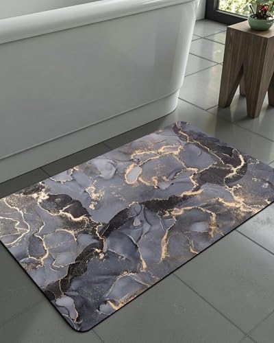 Bath Mat with Marble Pattern, Non Slip Bath Rug for Shower Floor, Absorbent Quick Dry Bathmats Low Profile Design, Soft Absorbent Material for Tub and