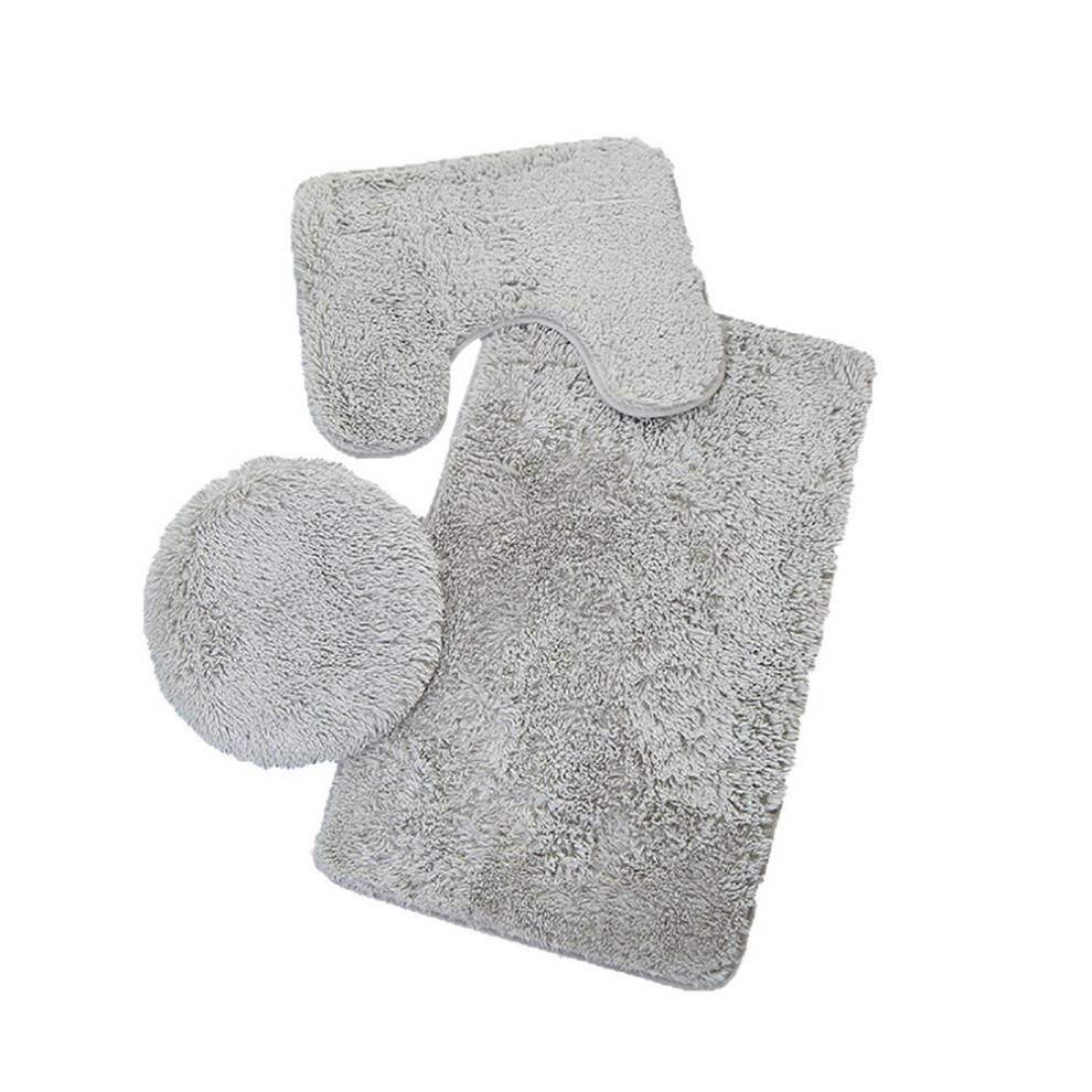 (Gray) 3pc Bathroom Set Rug Mat Toilet Lid Cover Plain Color Bathmats