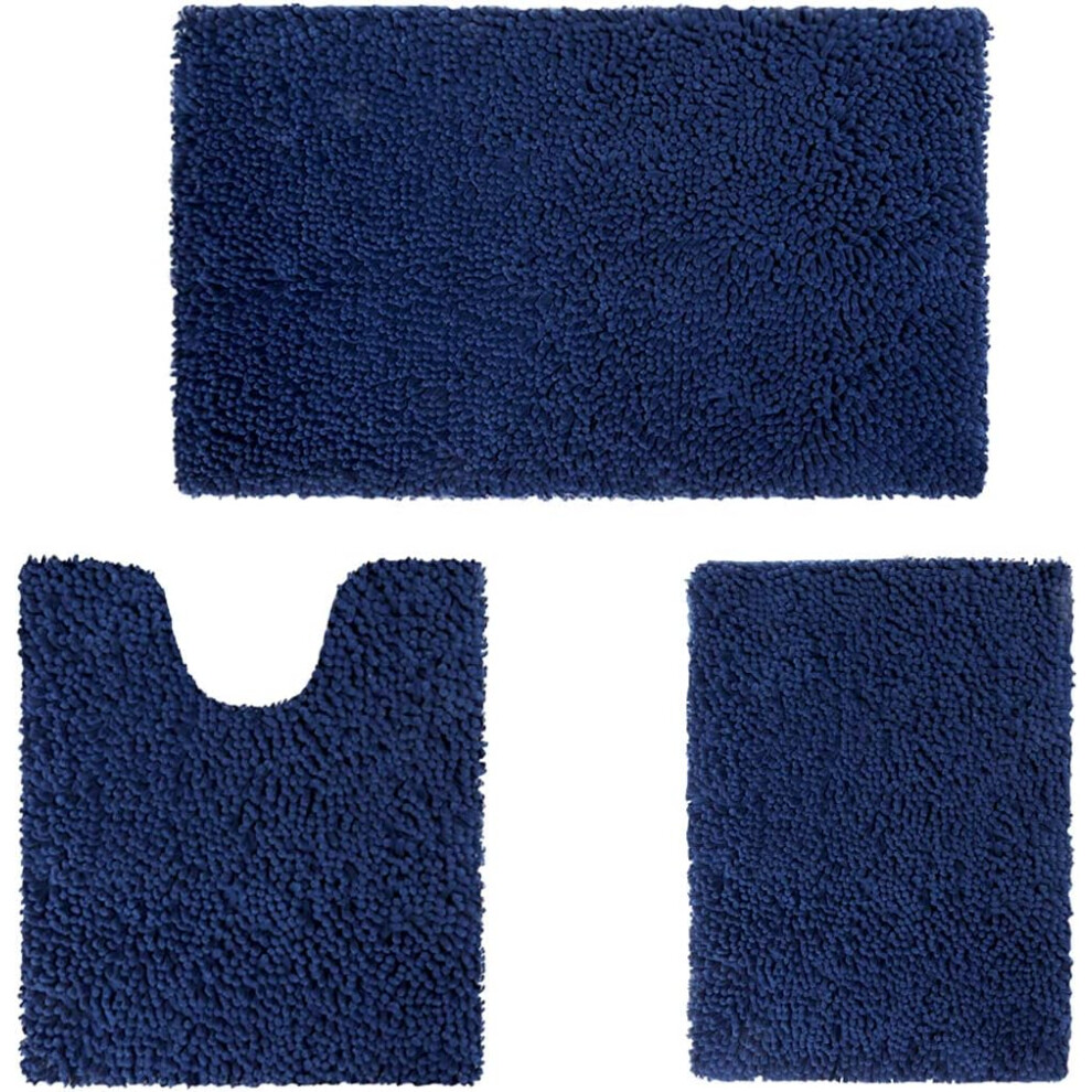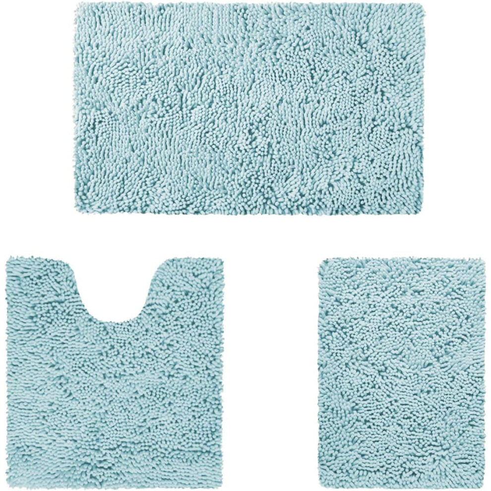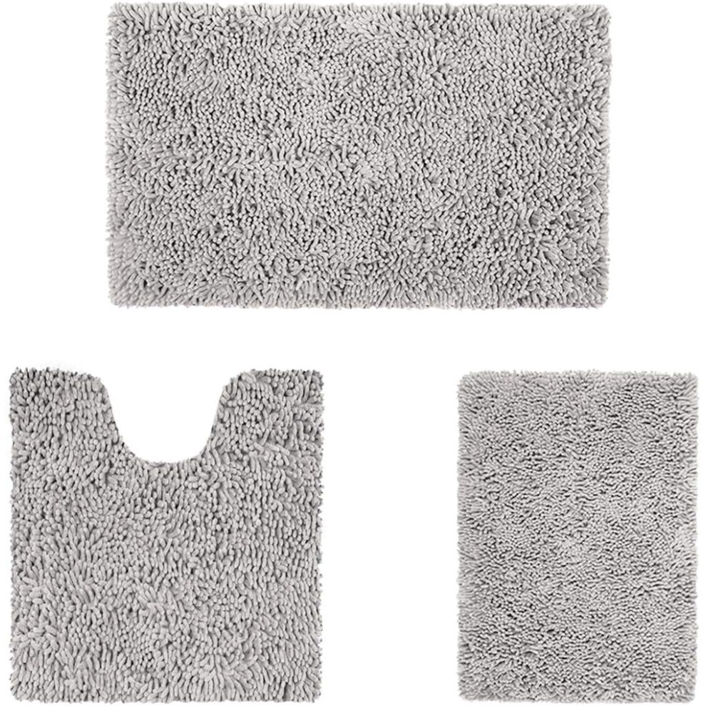 Ultra Soft Chenille Bathroom Rugs Sets, 3 Pieces Luxurious Plush Microfiber Bathmats, Non-Slip Backing, Quick Dry, Machine Washable, High-Pile Absorbe