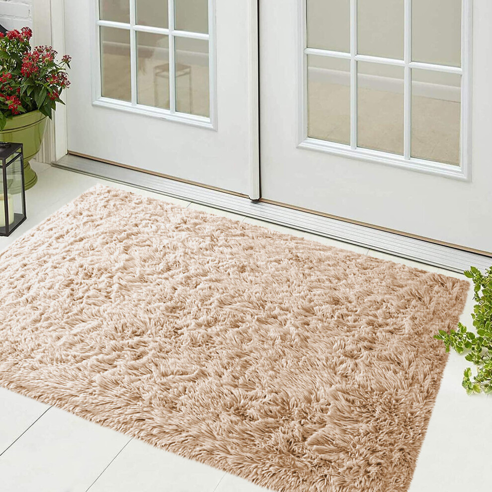 (Beige, 60 X 110 cm) Shaggy Rug Soft Non-Slip Bathmats Welcome Door Mat