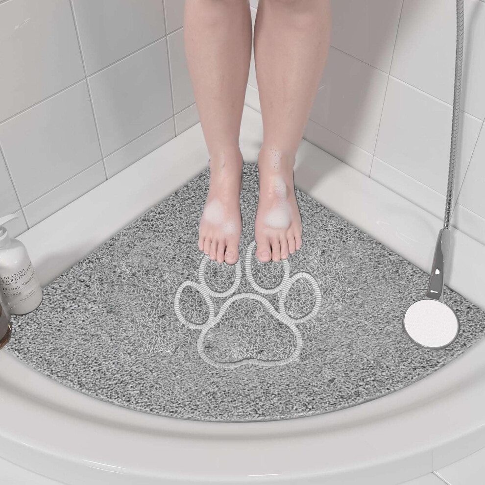 Nicoman Paw Corner Bath Mat Non Slip Anti Mould, 53 cm Bath Mats for Inside Shower, Quadrant Gray Bathmats for Bathtubs Toilet Bathroom Floor, PVC
