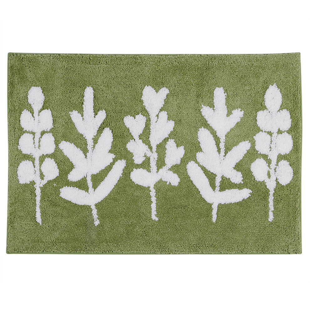 Machine Washable Plush Bathmats, Green Leaf Bath Mats, Yarn Seaming With High Density, Breathable And Natural For Tropical Decor, Environmentally Frie