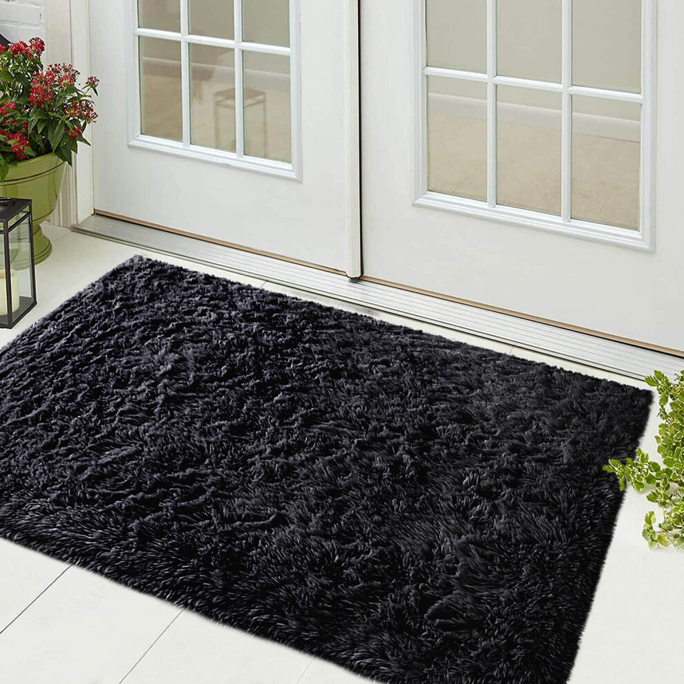 (Black, 50 x 80 cm) Shaggy Rug Soft Non-Slip Bathmats Welcome Door Mat