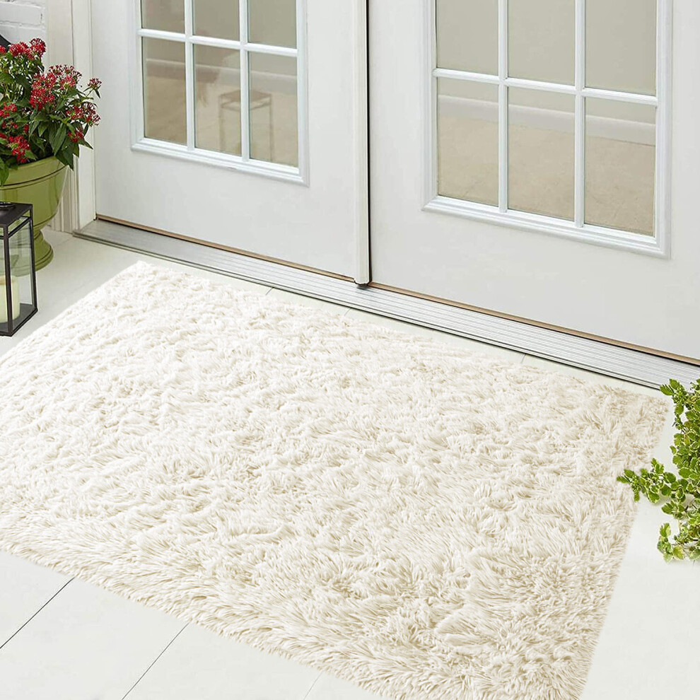 (Cream, 50 x 80 cm) Shaggy Rug Soft Non-Slip Bathmats Welcome Door Mat
